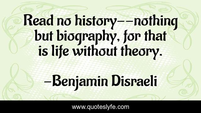 This page presents the quote "Read no history--nothing but biography, for that is life without theory.". Author of this quote is Benjamin Disraeli. This quote is about biography, history,.