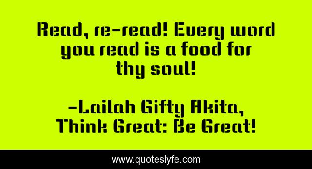 "Lailah Gifty Akita, Think Great: Be Great! Quotes." Quoteslyfe.com, 2025. Fri. 05 Dec. 2025. <https://www.quoteslyfe.com/quote/Read-re-read-Every-word-you-read-98771>.