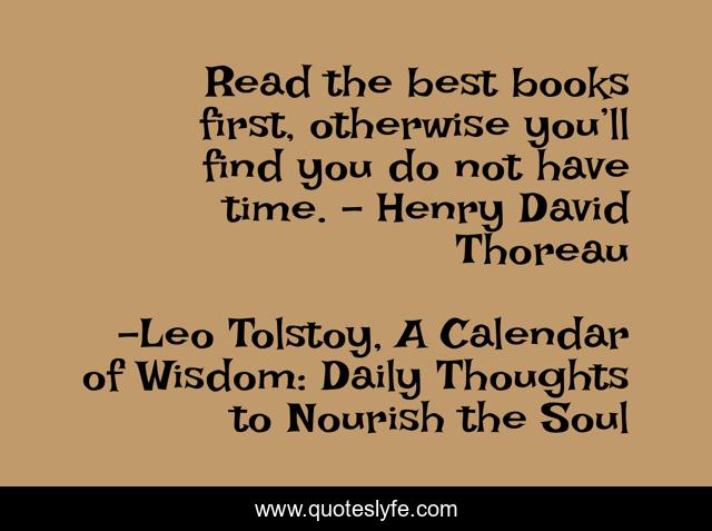 This page presents the quote "Read the best books first, otherwise you’ll find you do not have time. - Henry David Thoreau". Author of this quote is Leo Tolstoy, A Calendar of Wisdom: Daily Thoughts to Nourish the Soul. This quote is about reading-books, books, thoreau, time,.