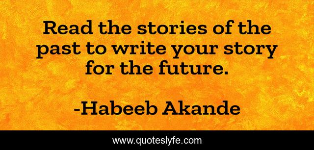 This page presents the quote "Read the stories of the past to write your story for the future.". Author of this quote is Habeeb Akande. This quote is about make-your-history, history, stories, learn,.