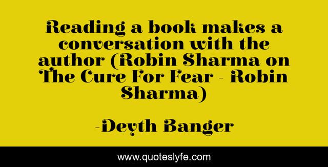 This page presents the quote "Reading a book makes a conversation with the author (Robin Sharma on The Cure For Fear - Robin Sharma)". Author of this quote is Deyth Banger. This quote is about sharma, read, robin-sharma, robin, conversation, books, makes, book,.