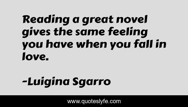 This page presents the quote "Reading a great novel gives the same feeling you have when you fall in love.". Author of this quote is Luigina Sgarro. This quote is about reading-books, falling-in-love, novel,.