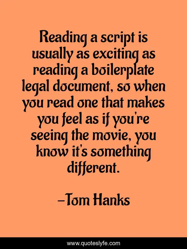 "Tom Hanks Quotes." Quoteslyfe.com, 2025. Fri. 05 Dec. 2025. <https://www.quoteslyfe.com/quote/Reading-a-script-is-usually-as-exciting-329436>.