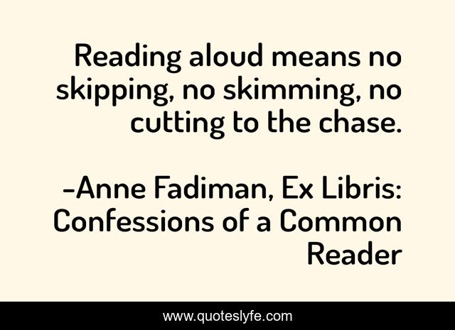 "Anne Fadiman, Ex Libris: Confessions of a Common Reader Quotes." Quoteslyfe.com, 2025. Mon. 08 Dec. 2025. <https://www.quoteslyfe.com/quote/Reading-aloud-means-no-skipping-no-skimming-66598>.