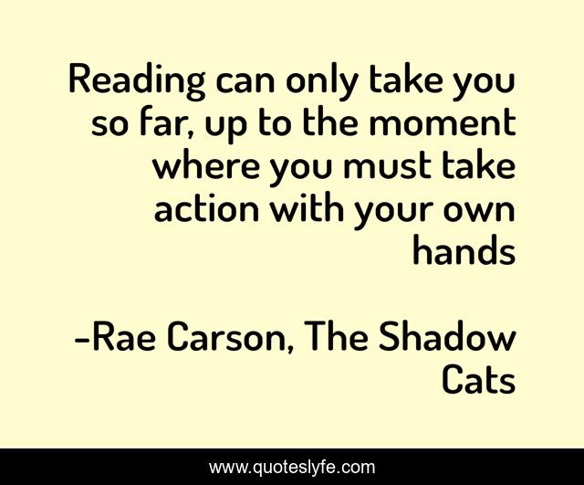 This page presents the quote "Reading can only take you so far, up to the moment where you must take action with your own hands". Author of this quote is Rae Carson, The Shadow Cats. This quote is about action, reading,.