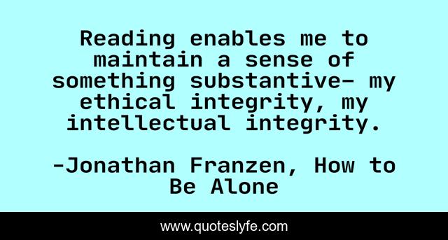 This page presents the quote "Reading enables me to maintain a sense of something substantive– my ethical integrity, my intellectual integrity.". Author of this quote is Jonathan Franzen, How to Be Alone. This quote is about self-knowledge, isolation, social-change, growth, reading, integrity,.