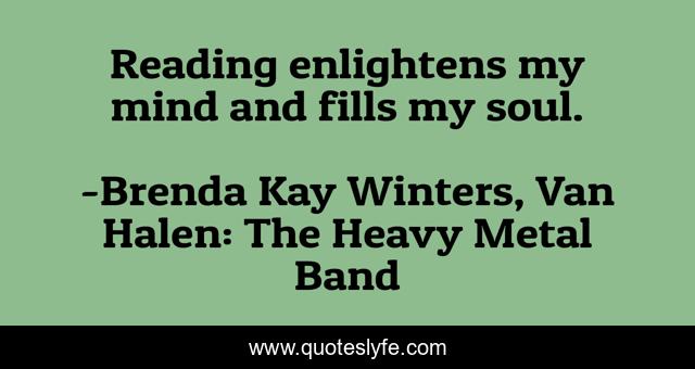 This page presents the quote "Reading enlightens my mind and fills my soul.". Author of this quote is Brenda Kay Winters, Van Halen: The Heavy Metal Band. This quote is about quotes, reading, quotes-to-live-by,.