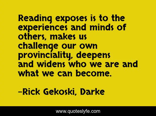 "Rick Gekoski, Darke Quotes." Quoteslyfe.com, 2025. Fri. 05 Dec. 2025. <https://www.quoteslyfe.com/quote/Reading-exposes-is-to-the-experiences-and-66749>.