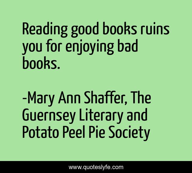 "Mary Ann Shaffer, The Guernsey Literary and Potato Peel Pie Society Quotes." Quoteslyfe.com, 2025. Fri. 05 Dec. 2025. <https://www.quoteslyfe.com/quote/Reading-good-books-ruins-you-for-enjoying-5679>.