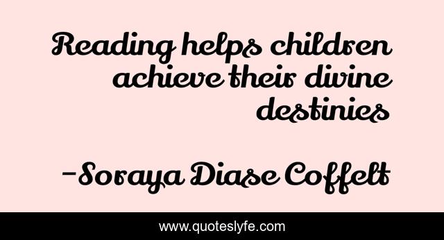 This page presents the quote "Reading helps children achieve their divine destinies". Author of this quote is Soraya Diase Coffelt. This quote is about quotes, reading, children, destiny,.