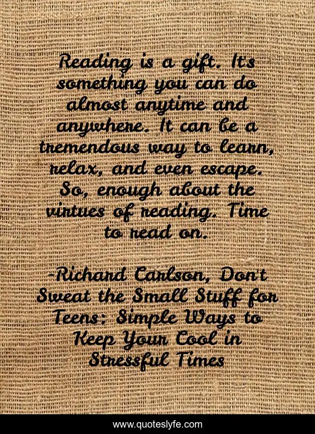 "Richard Carlson, Don't Sweat the Small Stuff for Teens: Simple Ways to Keep Your Cool in Stressful Times Quotes." Quoteslyfe.com, 2025. Mon. 08 Dec. 2025. <https://www.quoteslyfe.com/quote/Reading-is-a-gift-It-s-something-66562>.