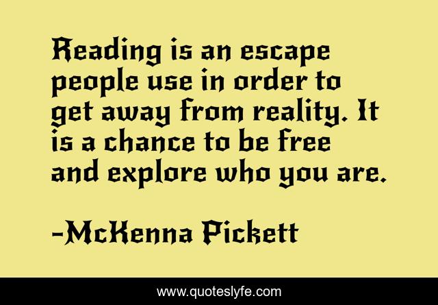 This page presents the quote "Reading is an escape people use in order to get away from reality. It is a chance to be free and explore who you are.". Author of this quote is McKenna Pickett. This quote is about reading, escape, free, reality,.