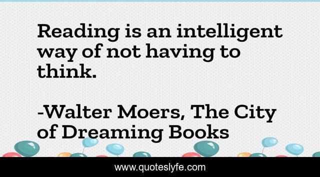 This page presents the quote "Reading is an intelligent way of not having to think.". Author of this quote is Walter Moers, The City of Dreaming Books. This quote is about reading, on-fiction, fiction,.