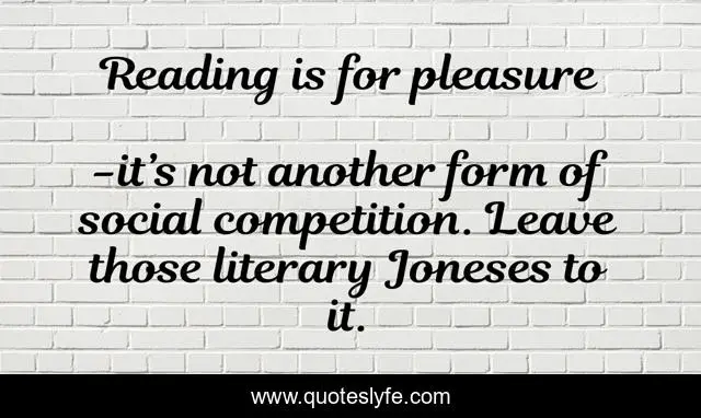 "it’s not another form of social competition. Leave those literary Joneses to it. Quotes." Quoteslyfe.com, 2025. Mon. 08 Dec. 2025. <https://www.quoteslyfe.com/quote/Reading-is-for-pleasure-66897>.