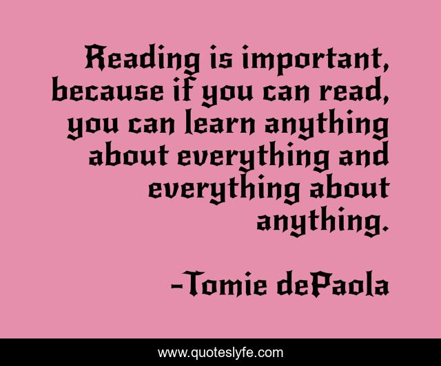 This page presents the quote "Reading is important, because if you can read, you can learn anything about everything and everything about anything.". Author of this quote is Tomie dePaola. This quote is about reading-books, gaining-knowledge, literacy,.