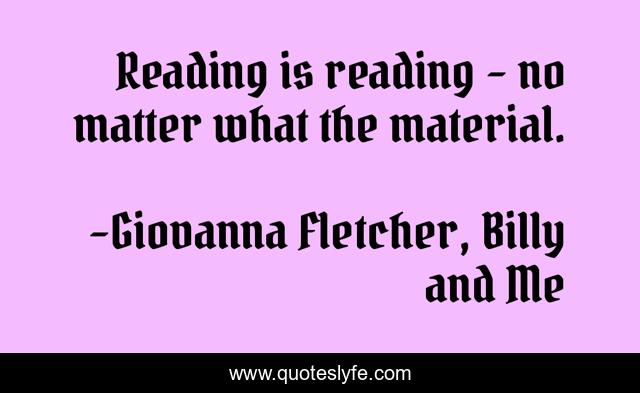 This page presents the quote "Reading is reading - no matter what the material.". Author of this quote is Giovanna Fletcher, Billy and Me. This quote is about books, reading,.