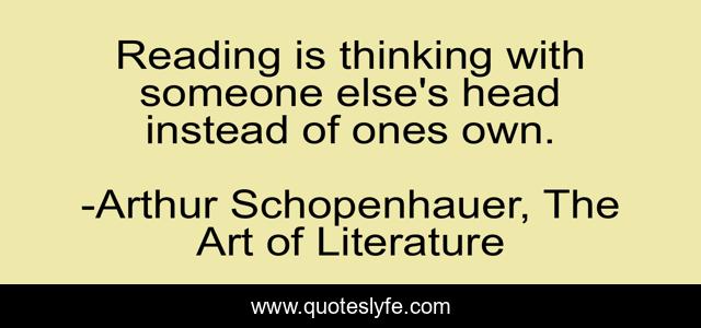 "Arthur Schopenhauer, The Art of Literature Quotes." Quoteslyfe.com, 2025. Fri. 05 Dec. 2025. <https://www.quoteslyfe.com/quote/Reading-is-thinking-with-someone-else-s-66613>.