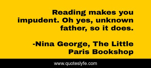 This page presents the quote "Reading makes you impudent. Oh yes, unknown father, so it does.". Author of this quote is Nina George, The Little Paris Bookshop. .