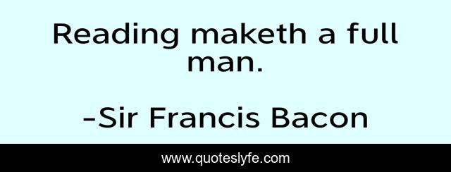 "Sir Francis Bacon Quotes." Quoteslyfe.com, 2025. Mon. 08 Dec. 2025. <https://www.quoteslyfe.com/quote/Reading-maketh-a-full-man-274542>.