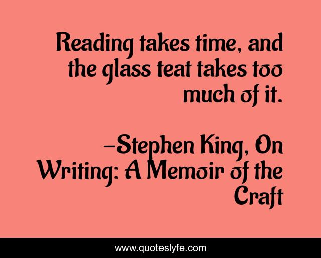 "Stephen King, On Writing: A Memoir of the Craft Quotes." Quoteslyfe.com, 2025. Tue. 09 Dec. 2025. <https://www.quoteslyfe.com/quote/Reading-takes-time-and-the-glass-teat-27676>.
