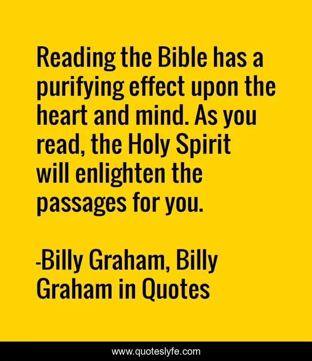 "Billy Graham, Billy Graham in Quotes Quotes." Quoteslyfe.com, 2025. Fri. 05 Dec. 2025. <https://www.quoteslyfe.com/quote/Reading-the-Bible-has-a-purifying-effect-81251>.