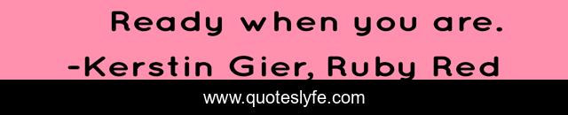 This page presents the quote "Ready when you are.". Author of this quote is Kerstin Gier, Ruby Red. This quote is about ready, ruby, kerstin, red, gier,.