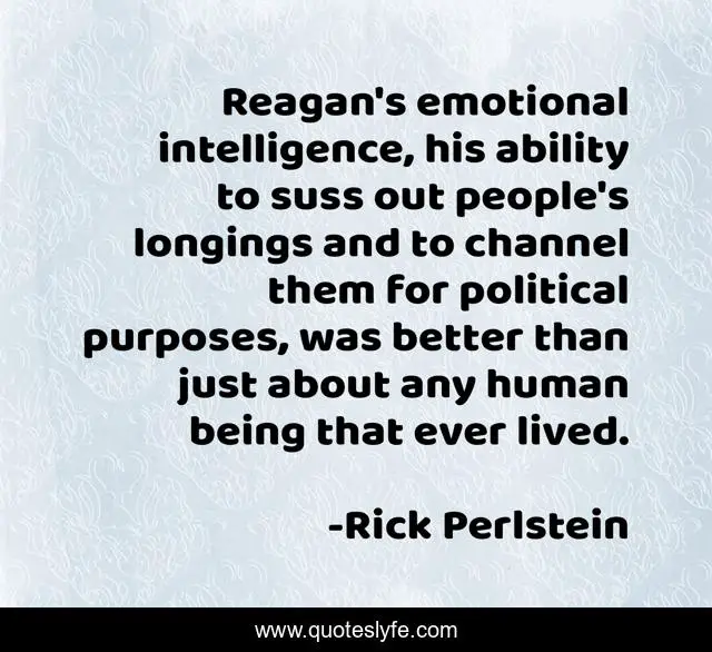 "Rick Perlstein Quotes." Quoteslyfe.com, 2025. Sat. 06 Dec. 2025. <https://www.quoteslyfe.com/quote/Reagan-s-emotional-intelligence-his-ability-to-298550>.