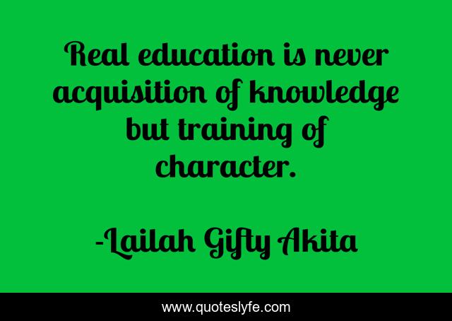 This page presents the quote "Real education is never acquisition of knowledge but training of character.". Author of this quote is Lailah Gifty Akita. This quote is about training, education, character, knowledge, wise-words,.
