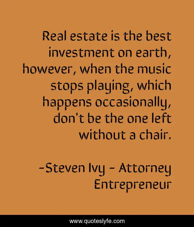 "Steven Ivy - Attorney Entrepreneur Quotes." Quoteslyfe.com, 2025. Mon. 08 Dec. 2025. <https://www.quoteslyfe.com/quote/Real-estate-is-the-best-investment-on-128795>.