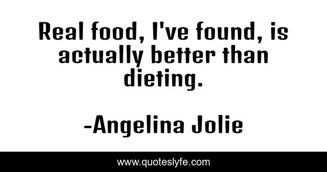 This page presents the quote "Real food, I've found, is actually better than dieting.". Author of this quote is Angelina Jolie. This quote is about better, real, found,.