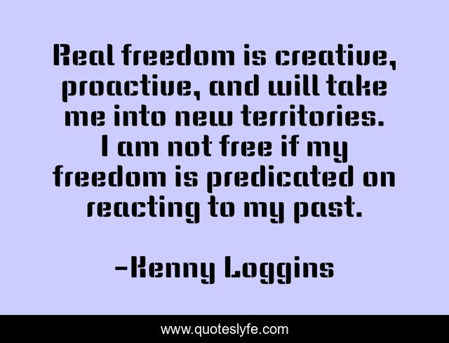This page presents the quote "Real freedom is creative, proactive, and will take me into new territories. I am not free if my freedom is predicated on reacting to my past.". Author of this quote is Kenny Loggins. This quote is about past, me,.