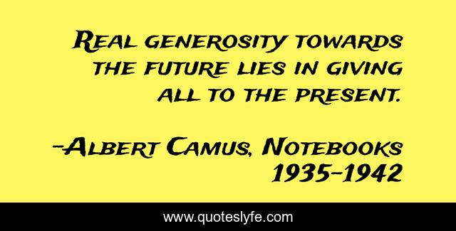 "Albert Camus, Notebooks 1935-1942 Quotes." Quoteslyfe.com, 2025. Fri. 05 Dec. 2025. <https://www.quoteslyfe.com/quote/Real-generosity-towards-the-future-lies-in-109792>.