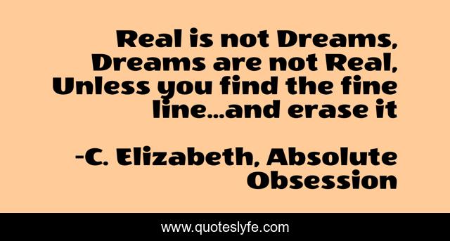 "C. Elizabeth, Absolute Obsession Quotes." Quoteslyfe.com, 2025. Sat. 06 Dec. 2025. <https://www.quoteslyfe.com/quote/Real-is-not-Dreams-Dreams-are-not-18242>.