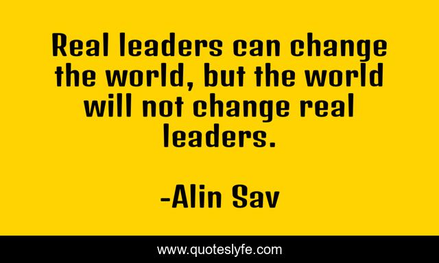 This page presents the quote "Real leaders can change the world, but the world will not change real leaders.". Author of this quote is Alin Sav. This quote is about enthusiasm, leadership, inspirational,.