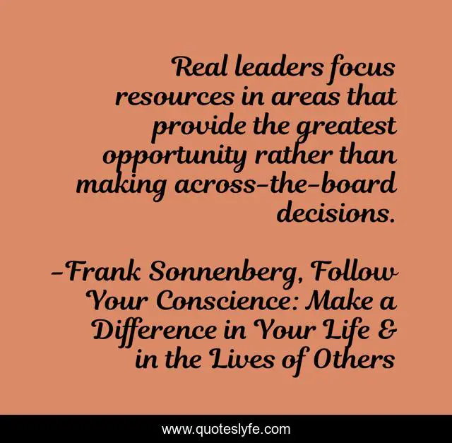 "Frank Sonnenberg, Follow Your Conscience: Make a Difference in Your Life & in the Lives of Others Quotes." Quoteslyfe.com, 2025. Fri. 05 Dec. 2025. <https://www.quoteslyfe.com/quote/Real-leaders-focus-resources-in-areas-that-64449>.