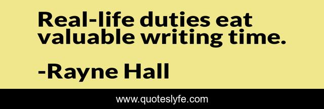 This page presents the quote "Real-life duties eat valuable writing time.". Author of this quote is Rayne Hall. This quote is about writing-life, author, writing,.