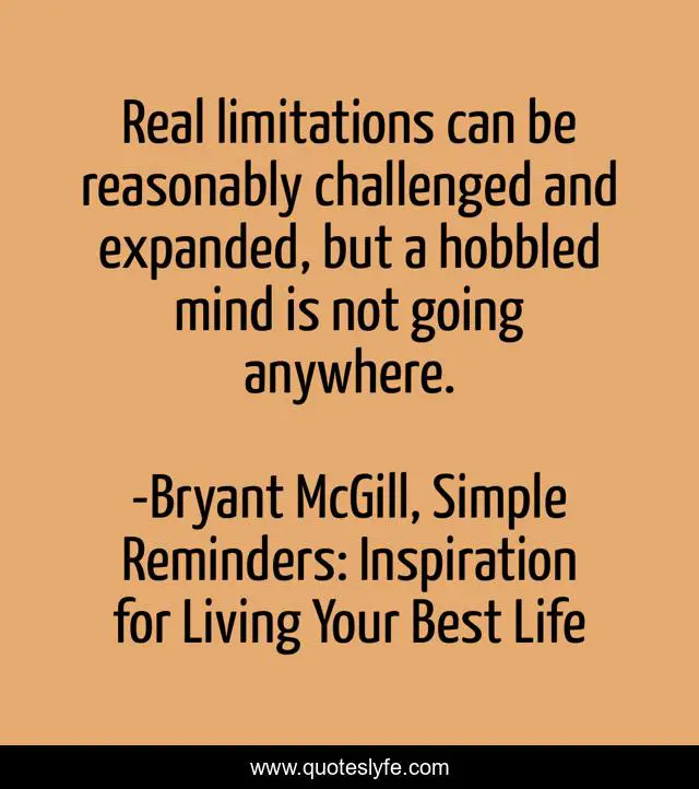 "Bryant McGill, Simple Reminders: Inspiration for Living Your Best Life Quotes." Quoteslyfe.com, 2025. Fri. 05 Dec. 2025. <https://www.quoteslyfe.com/quote/Real-limitations-can-be-reasonably-challenged-and-87706>.