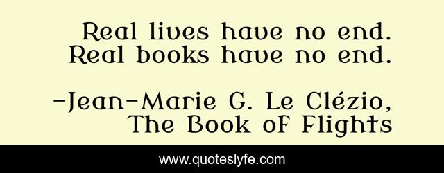 "Jean-Marie G. Le Clézio, The Book of Flights Quotes." Quoteslyfe.com, 2025. Sat. 06 Dec. 2025. <https://www.quoteslyfe.com/quote/Real-lives-have-no-end-Real-books-43521>.