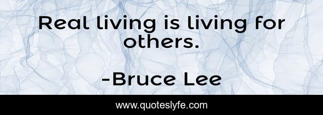 This page presents the quote "Real living is living for others.". Author of this quote is Bruce Lee. .