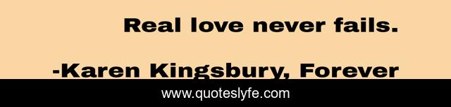 "Karen Kingsbury, Forever Quotes." Quoteslyfe.com, 2025. Tue. 09 Dec. 2025. <https://www.quoteslyfe.com/quote/Real-love-never-fails-5102>.