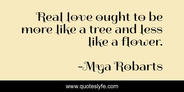 This page presents the quote "Real love ought to be more like a tree and less like a flower.". Author of this quote is Mya Robarts. This quote is about flower, love, trees, the-v-girl, mya-robarts, lovequotes, affection,.