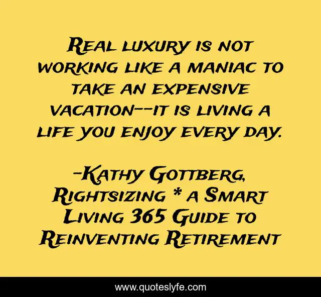 "Kathy Gottberg, Rightsizing * a Smart Living 365 Guide to Reinventing Retirement Quotes." Quoteslyfe.com, 2025. Fri. 05 Dec. 2025. <https://www.quoteslyfe.com/quote/Real-luxury-is-not-working-like-a-241321>.