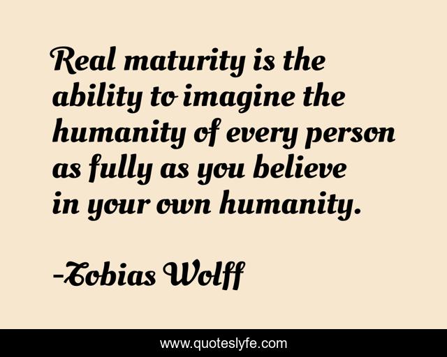 This page presents the quote "Real maturity is the ability to imagine the humanity of every person as fully as you believe in your own humanity.". Author of this quote is Tobias Wolff. .