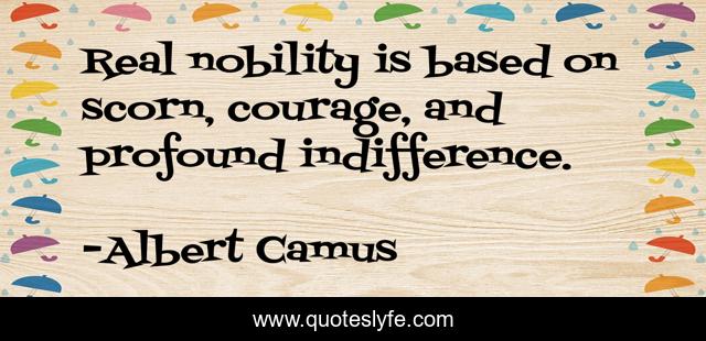 This page presents the quote "Real nobility is based on scorn, courage, and profound indifference.". Author of this quote is Albert Camus. This quote is about real, indifference, profound,.