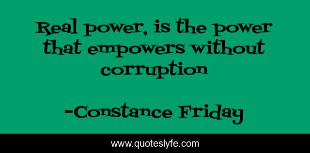 This page presents the quote "Real power, is the power that empowers without corruption". Author of this quote is Constance Friday. This quote is about control, real, empowerment, power, people, empower, influence, great, wisdom,.