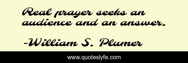 "William S. Plumer Quotes." Quoteslyfe.com, 2025. Mon. 08 Dec. 2025. <https://www.quoteslyfe.com/quote/Real-prayer-seeks-an-audience-and-an-274009>.