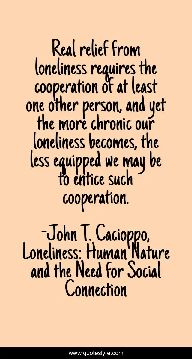 "John T. Cacioppo, Loneliness: Human Nature and the Need for Social Connection Quotes." Quoteslyfe.com, 2025. Sun. 07 Dec. 2025. <https://www.quoteslyfe.com/quote/Real-relief-from-loneliness-requires-the-cooperation-139344>.