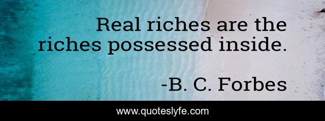 This page presents the quote "Real riches are the riches possessed inside.". Author of this quote is B. C. Forbes. This quote is about real, inside, riches,.