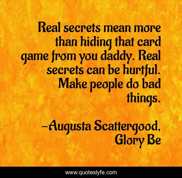 "Augusta Scattergood, Glory Be Quotes." Quoteslyfe.com, 2025. Fri. 05 Dec. 2025. <https://www.quoteslyfe.com/quote/Real-secrets-mean-more-than-hiding-that-212391>.