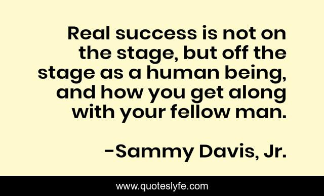 This page presents the quote "Real success is not on the stage, but off the stage as a human being, and how you get along with your fellow man.". Author of this quote is Sammy Davis, Jr.. This quote is about human, man,.